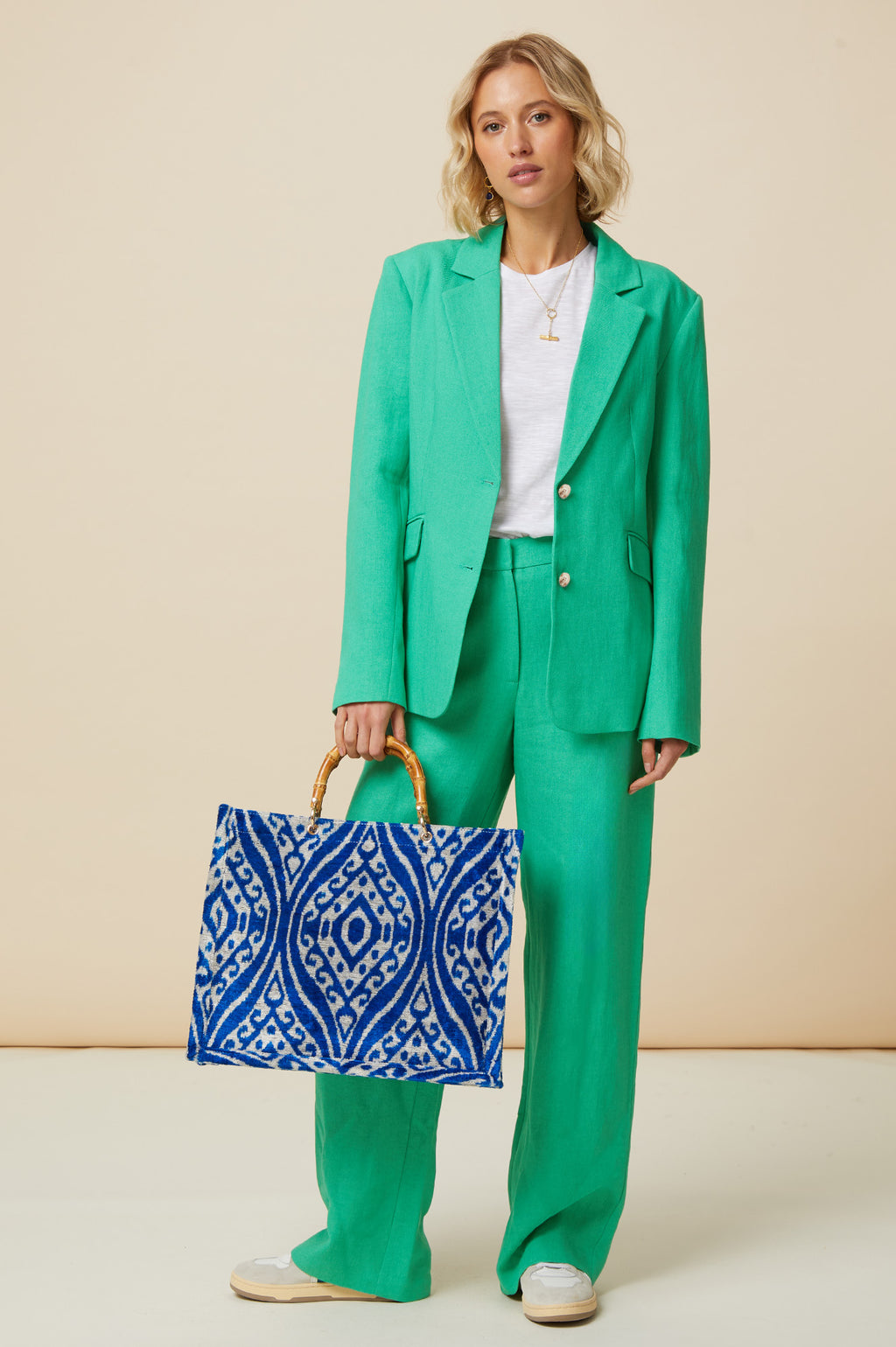 • Our silk velvet Ikat bags are completely hand-crafted start to finish. Silk is boiled over an open fire, hand dyed, then hand woven on a small loom all in Uzbekistan. Then each bag is hand sewn by our atelier in Istanbul. Remnants are used to make our patchwork fabrics. Due to the handmade nature of these bags, the colour and pattern placement may vary. Each piece is a one-of-a-kind piece of art with its own idiosyncrasy.