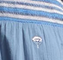 Zoom in of blue cotton broderie dress with a v-necklineBlue cotton broderie dress with a v-neckline and ruffled cuffs paired with tie espadrilles