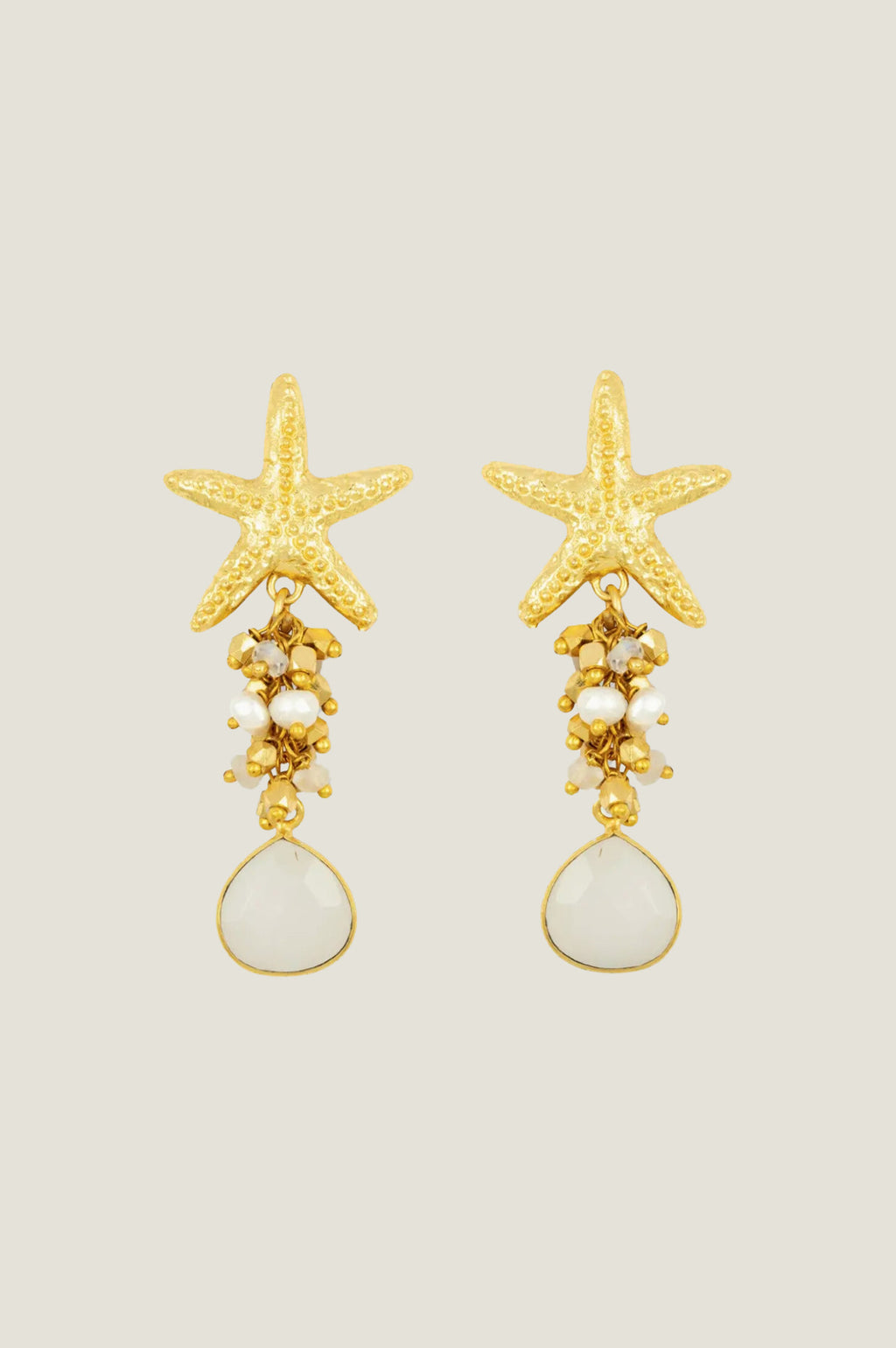 - Starfish stud and bead cluster drop earring