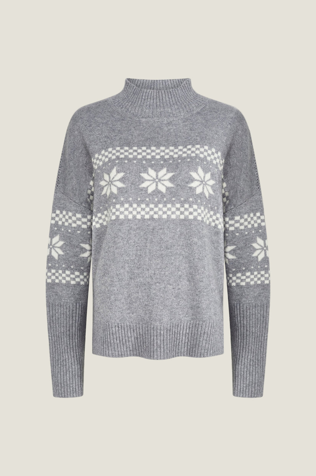 - Ribbed funnel neck, cuffs and hem