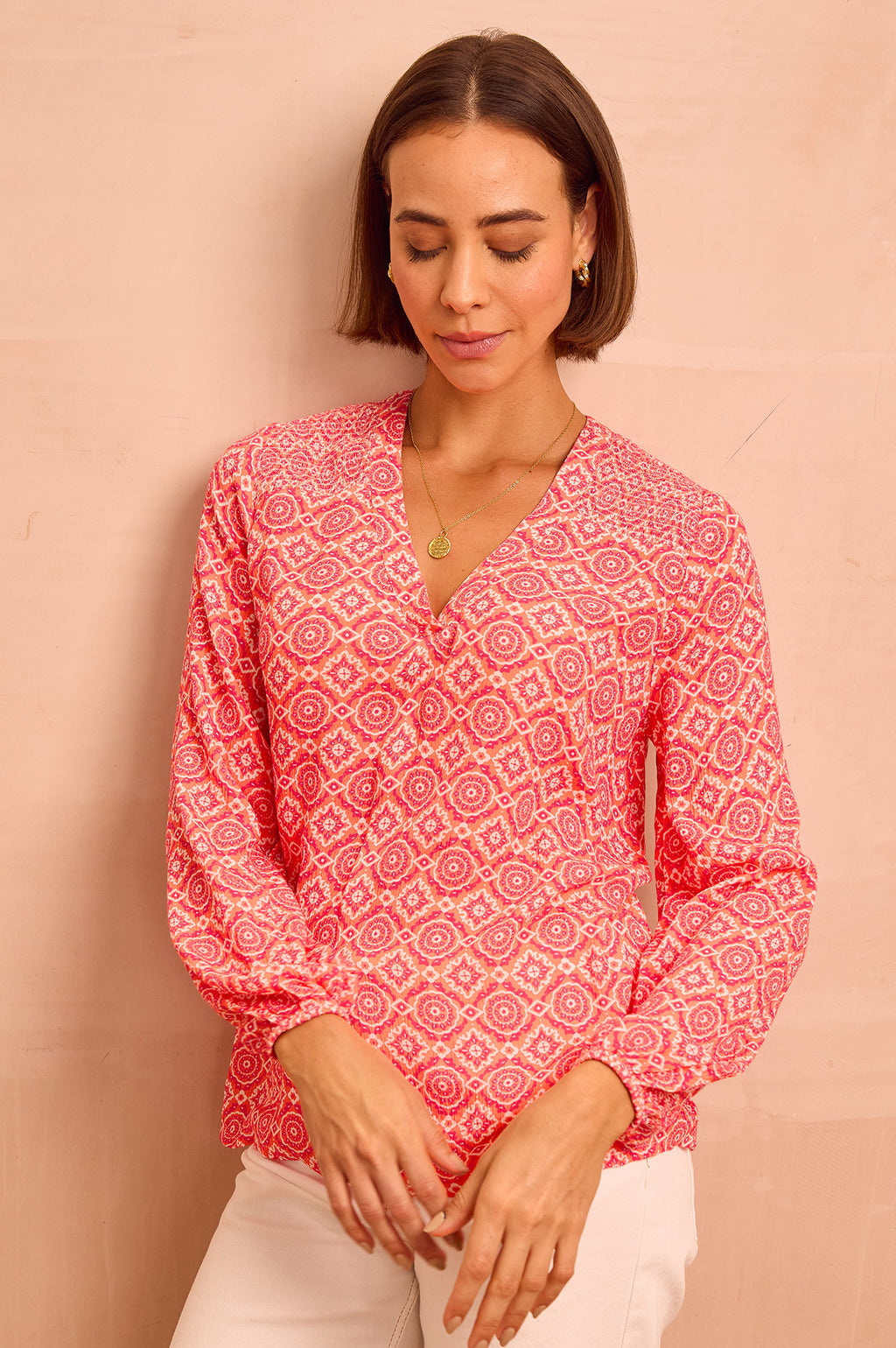 Clea Blouse | Flower Tile Orange/Pink