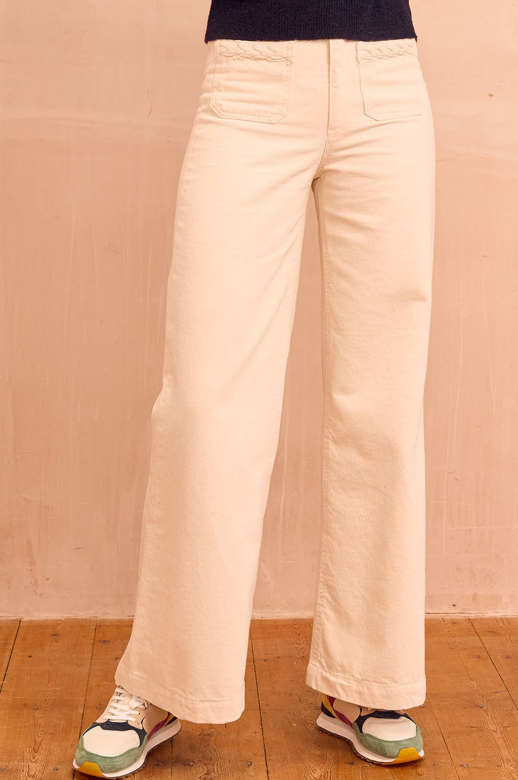 - Patch pockets with subtle braiding