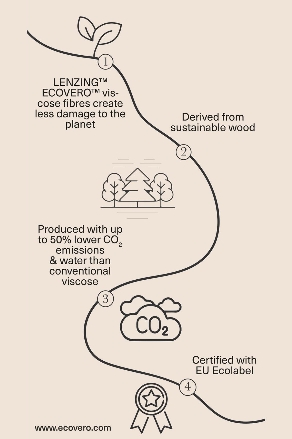 - LENZING™ and ECOVERO™ are trademarks of Austrian company Lenzing AG. From beginning to end, this type of viscose is the most sustainable choice; procuring woodpulp from certified forests which do not contribute to deforestation, with processing that uses 50% lower emissions and water impact than generic viscose. Certified as compostable and biodegradable under industrial, home, soil and marine conditions. When worn, this fabric drapes beautifully, is smooth to the touch and has non-static properties.