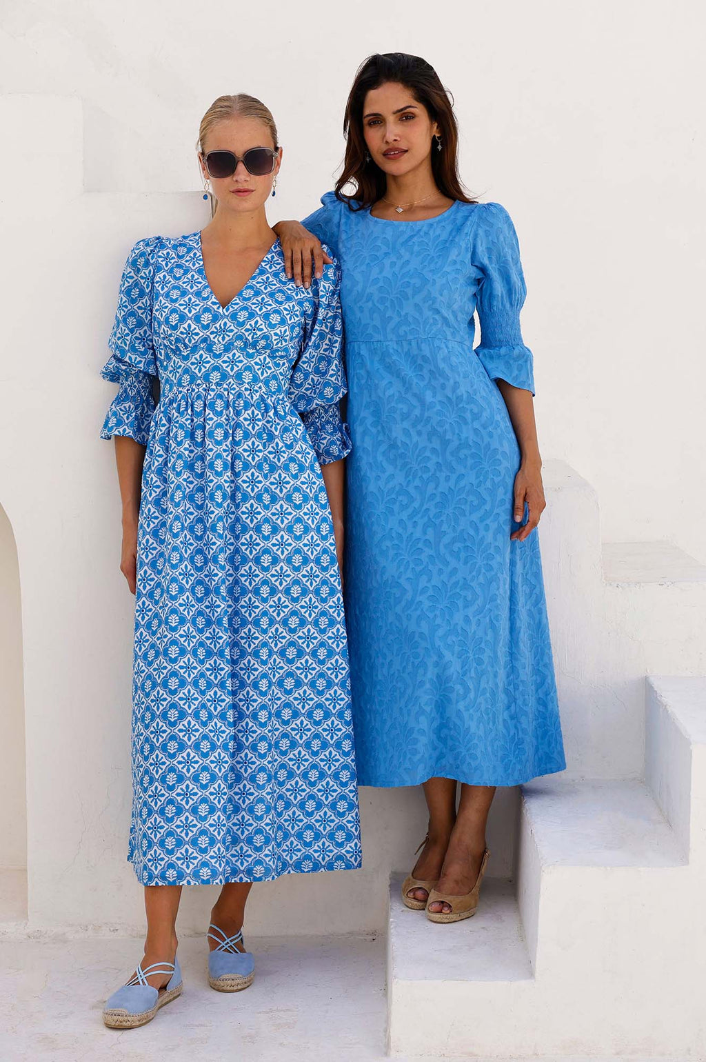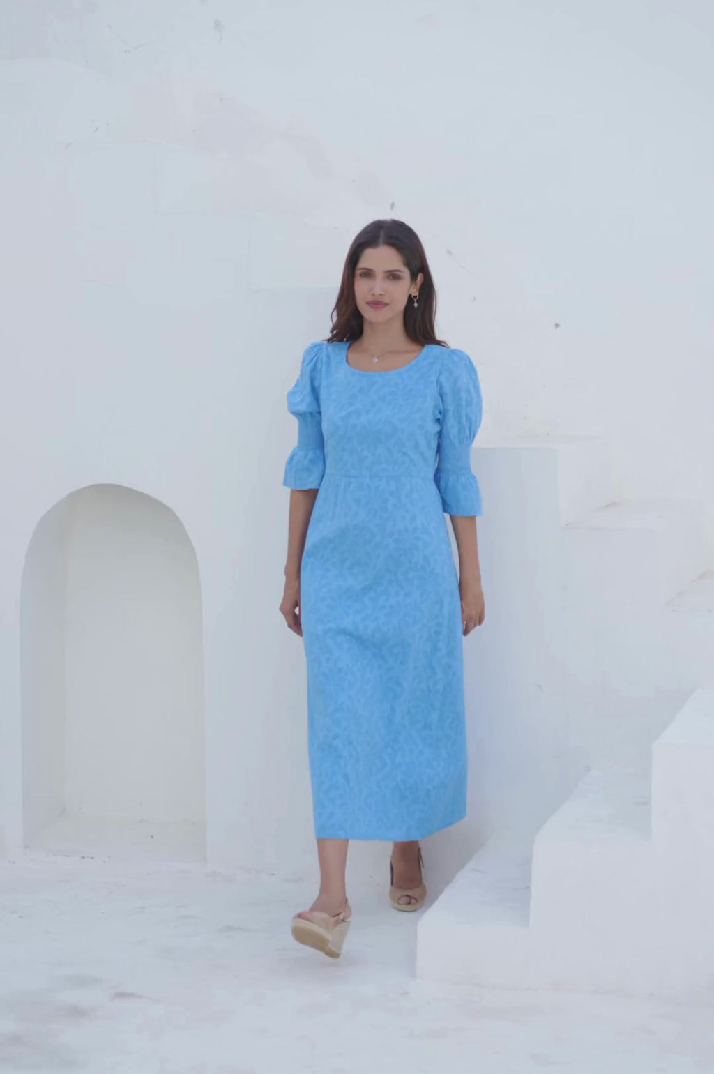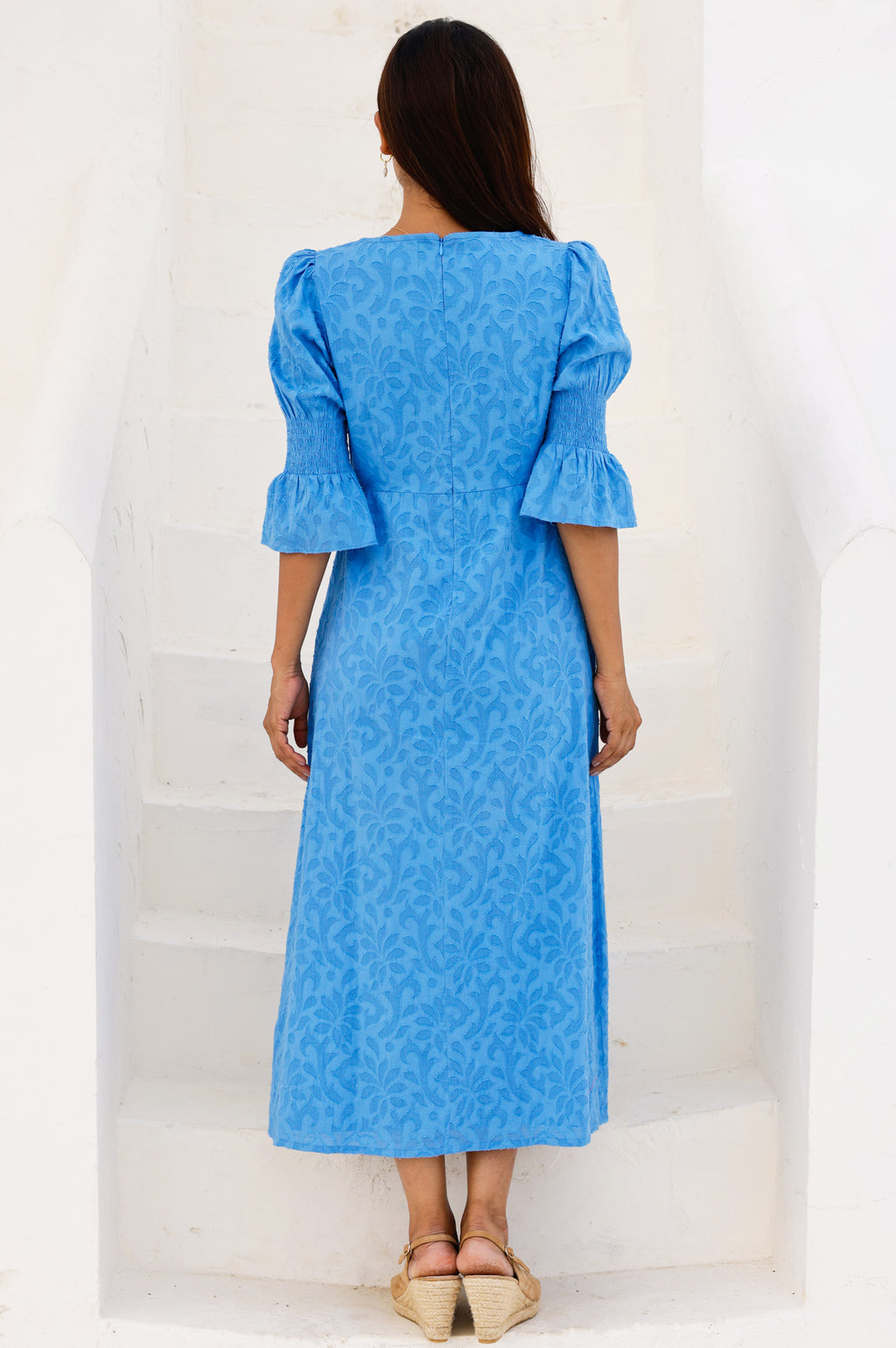 Flora 3/4 Length Sleeve Dress | Blue - Aspiga