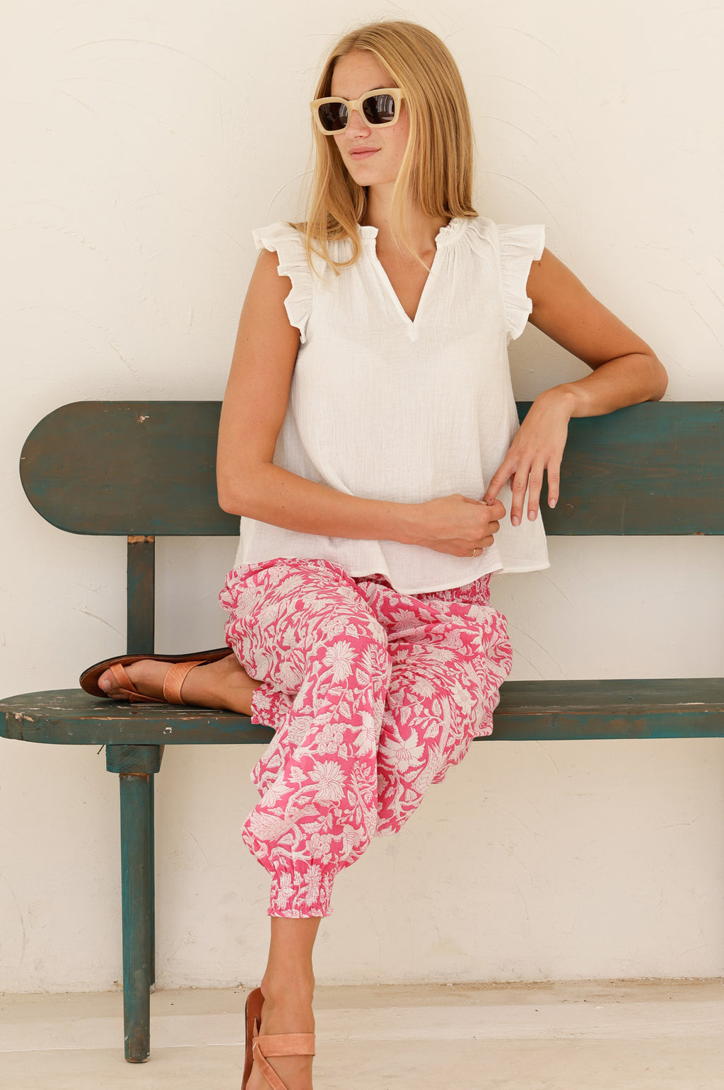 Harem Organic Cotton Trousers | Paradise Pink/White - Aspiga