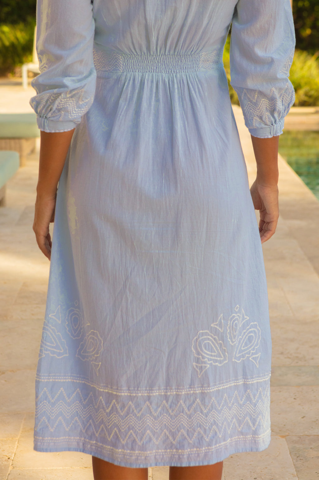 Jamila Embroidered Dress | Sky/White - Aspiga