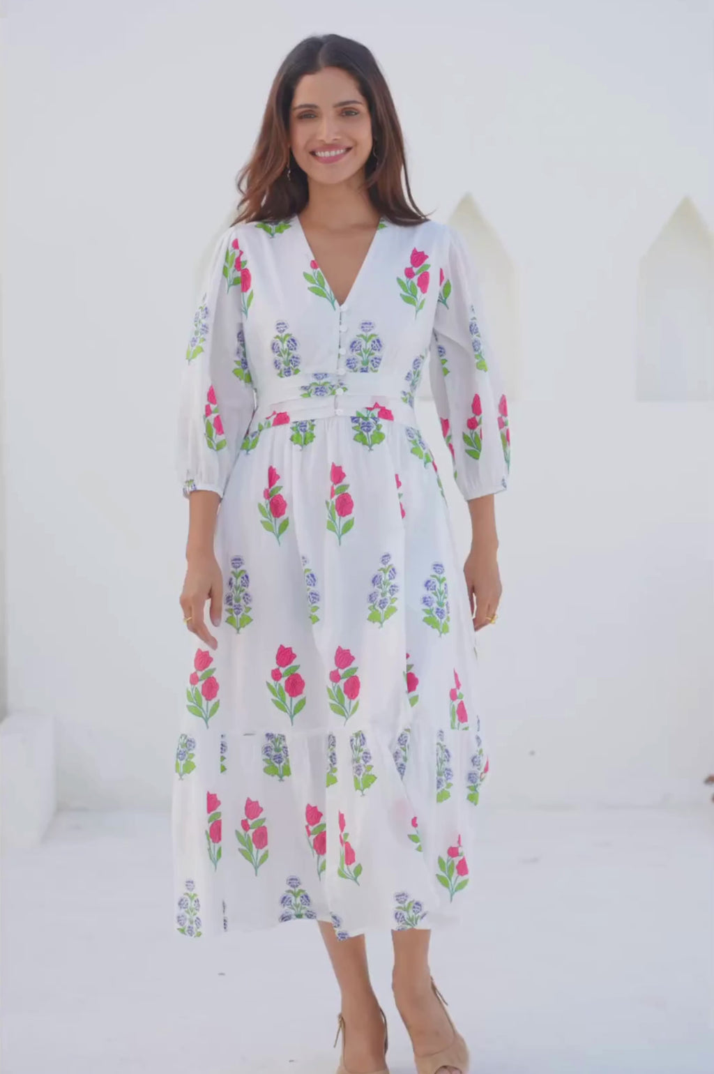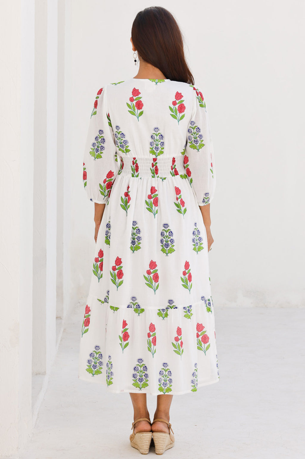 Jyoti Organic Cotton Dress | White/Red - Aspiga