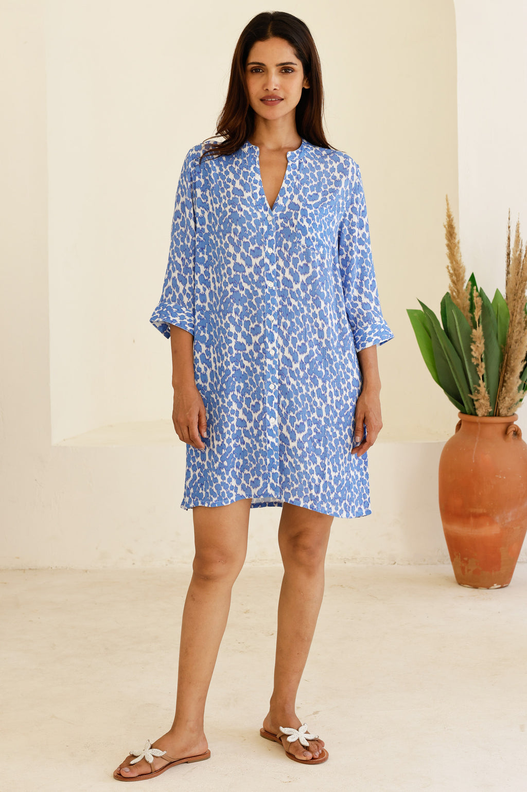 Mila Viscose Crinkle Shirt Tunic | White/Blue